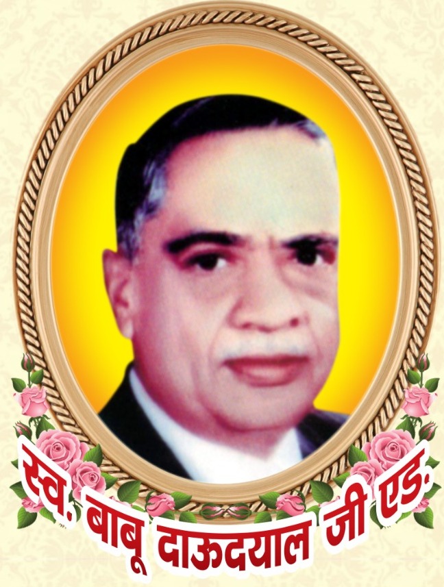 जिनकी पुण्य स्मृति में विद्यालय निरन्तर प्रगति पथ पर अग्रसर है ... योगेश्वर भगवान श्रीकृष्ण की लीलास्थली मथुरा के शिक्षा के प्रति समर्पित सहृदय, समाजसेवी बाबू दाऊदयाल अग्रवाल एडवोकेट अपने कार्य क्षेत्र में प्रतिभाशाली अधिवक्ता रहे। श्री अग्रवाल शिक्षा मण्डल मथुरा, द्वारा संचालित कॉलेजों में विभिन्न पदों पर रहकर सहयोग प्रदान किया एवं आपने अनेक सामाजिक संस्थाओं यथा-अग्रवाल सभा, तिलक द्वार अग्रवाल धर्मशाला समिति, वृजचिकित्सा संस्थान दरेसी, टैक्सवार एसोसिएशन अध्यक्ष पद के दायित्व का सफलता पूर्वक निर्वहन किया।